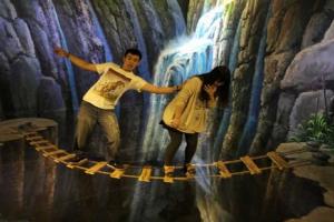 韩国5D奇幻世界摄影馆是由韩国著名现代派画师亲手打造的世界殿堂级3D立体画摄影馆,占地面积1000多平米。5D奇幻世界摄影馆是利用错视艺术供人娱乐并宣传教育的艺术画馆。 错视艺术(Trick Art),是利用人们两眼视觉差别和光学折射原理,在一个平面内使人们可直接看到一幅立体画的美术艺术。